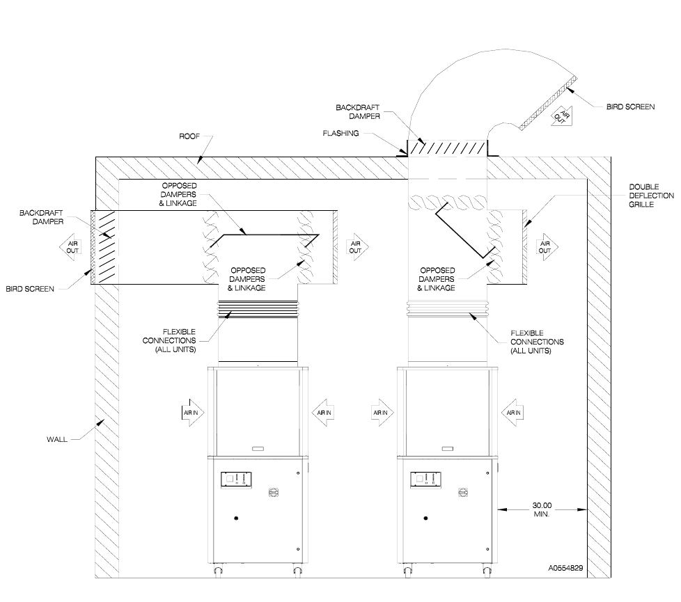 building structure, not off of the chiller • Back draft damper to outside must be closed at all times when