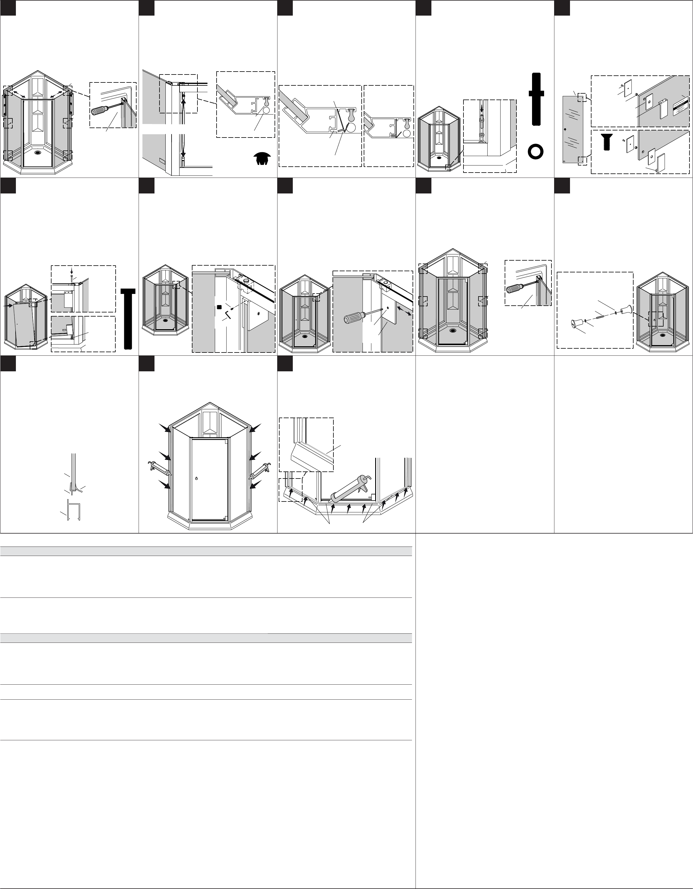 1. Fuites d'eau autour de la porte. A. S'assurer que le pivot de la porte est installé loin de la pomme de douche. Voir l'étape 1.