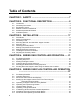 Table of Contents CHAPTER 1: SAFETY ................................................................ 7 CHAPTER 2: FUNCTIONAL DESCRIPTION.............................. 8 2-1 2-2 2-3 2-4 2-5 2-6 Introduction.................................................................................................................. 8 Necessary Documents ................................................................................................ 8 Equipment Function ...................................................