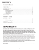CONTENTS Installation Manual SPECIFICATIONS..........................................................................................................4 INTRODUCTION............................................................................................................5 MOUNTING THE UNIT...................................................................................................6 INSTALLATION.............................................................................................................