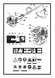 17. Zadná rukoväť 18. Zapaľovacia sviečka ňovaním paliva nechajte motor vychladnúť najmenej na 2 minúty. 59. Upozornenie! Zdržujte sa v dostatočnej vzdialenosti od horúcich povrchov. 31. Vypínač motora 32. Ovládanie akcelerátora 33. Západka akcelerátora 34. Štartovacia rukoväť 35. Ovládací prvok sýtiča (Štartér) 36. Ovládací prvok nasatia zmesi (Primer) 37. Delič akcelerátora (ak je súčasťou) 38.