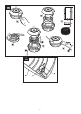 изоляции. Следует производить замену в любом случае каждые 100 часов работы. 5.2 ОЧИСТКА ДВИГАТЕЛЯ И ГЛУШИТЕЛЯ Для снижения опасности пожара регулярно очищать ребра цилиндра сжатым воздухом и очищать зону глушителя от веток, листьев и прочих отходов. 5.7 ЗАМЕНА НИТИ ГОЛОВКИ (Рис. 13) – Выполнить последовательность, указанную на рисунке. 5.