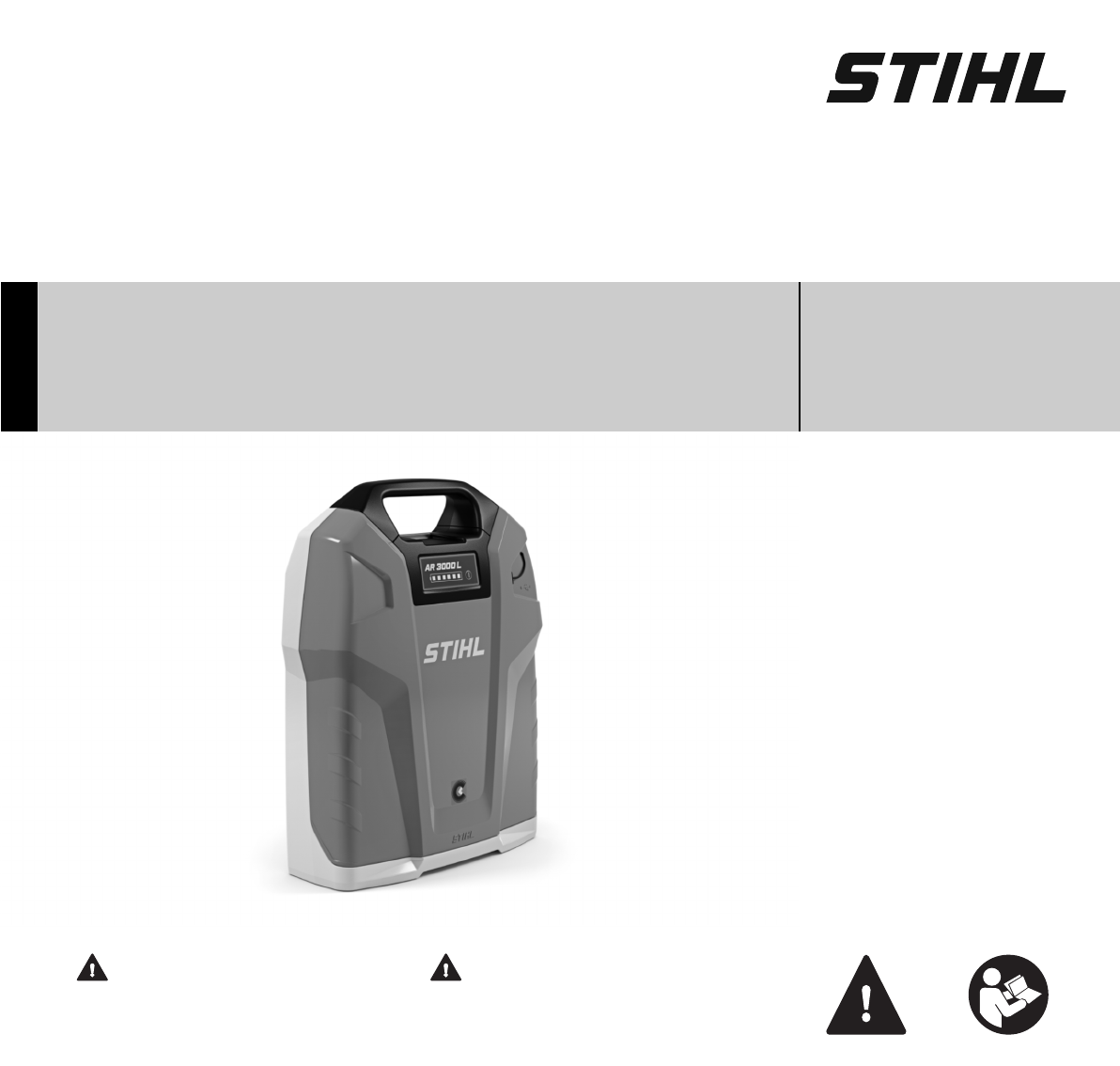 STIHL AR 2000 L, 3000 L WARNING Read Instruction Manual thoroughly before use and follow all safety precautions – improper use can cause serious or fatal injury. ADVERTENCIA Antes de usar la máquina lea y siga todas las precauciones de seguridad dadas en el manual de instrucciones – el uso incorrecto puede causar lesiones graves o mortales.