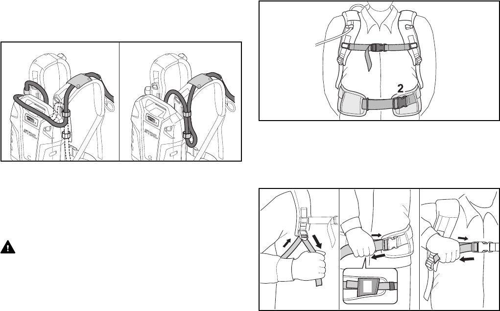 ► Colóquese la batería tipo mochila sobre la espalda.
