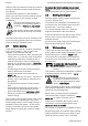 2 Safety Precautions and Working Techniques English Work calmly and carefully – in daylight conditions and only when visibility is good. Proceed with caution, do not put others in danger. leaks and the safety equipment is fully operative. Do not continue operating your power tool if it is damaged. In case of doubt, contact a dealer. Take breaks when you start getting tired or feel‐ ing fatigue – risk of accidents! 2.