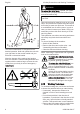 14 Maintenance and Care All accessible screws and nuts (not adjusting screws) Anti-vibration elements2) Safety labels 1) 2) X X as required monthly weekly X if damaged X if problem Visual inspection (con‐ dition, wear, leaks) Clean Replace any damaged parts Control handle Check operation Air filter Visual inspection Clean Replace Manual fuel pump (if fitted) Check Have repaired by serv‐ icing dealer1) Pickup body in fuel tank Check Install new pickup body Fuel tank Clean Carburetor Check idle ad