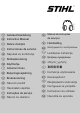 TP TC 019/2011 Made in/Сделано в: См. упаковку/Наименование продукта КО ТР 019/2011 Дайындалған жері: Қаптамадан/Бұйымның заттаңбасынан қараңыз! Andreas Stihl AG & Co. KG Badstrasse 115 D-71336 Waiblingen ~ 07151-26-0 www.stihl.com © ANDREAS STIHL AG & Co.