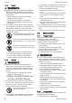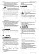 English 4.5.2 4 Safety Precautions Battery WARNING ■ Bystanders, children and animals cannot rec‐ ognize or assess the dangers of the battery. Bystanders, children and animals may be seri‐ ously injured. ► Keep bystanders, children and animals away from the work area. ► Do not leave the battery unattended. ► Make sure that children cannot play with the battery. ■ The battery is not protected against all ambi‐ ent conditions.