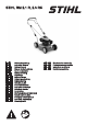 English 2 Guide to Using this Manual STIHL expressly commit themselves to a sus‐ tainable and responsible handling of natural resources. This user manual is intended to help you use your STIHL product safely and in an environmentally friendly manner over a long service life. We thank you for your confidence in us and hope you will enjoy working with your STIHL product. 2.3 3 3.1 Symbols in Text This symbol refers to a chapter in this instruction manual. Overview Lawn Mower Dr.