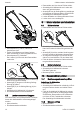 български ► Притиснете превключващия лост за режима на косене (4) към ръкохватката (2) и го задръжте натиснат. ► Бавно издърпайте ръкохватката за старти‐ ране (5) в посока към водача на въжето (6). ► Закачете ръкохватката за стартиране (5) във водача на въжето (6). ► Отпуснете превключващия лост за режима на косене (4). ► Поставете обратно накрайника на запали‐ телната свещ. 8.2 Сгъване на ръкохватката За по-компактно транспортиране или съхра‐ нение ръкохватката може да се сгъва. ► Изключете двигателя.