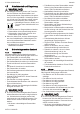 lietuviškai 4 Saugumo nurodymai ■ Dirbdamas per lietų naudotojas gali paslysti. eksploatuoti. Gali būti sunkiai sužaloti žmonės Naudotojas gali būti sunkiai arba mirtinai suža‐ ir padaryta materialinės žalos. lotas. ► Nebedirbkite ir kreipkitės į STIHL prekybos ► Jei lyja, nedirbkite. atstovą. ■ Dirbant vejapjovė gali sukelti vibracijas. 4.9 Gabenimas ► Mūvėkite darbines pirštines. ► Darykite pertraukas. ► Atsiradus kraujotakos sutrikimo požymių, ■ Gabenama vejapjovė gali apvirsti arba judėti.