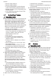 English 5 Preparing the Lawn Mower for Operation ► Maintain the blade as described in this instruction manual. ■ The user may cut themselves on sharp cutting edges during blade cleaning, maintenance or repair. This may result in injury to the user. ► Wear work gloves made from resistant material. ■ The blade may become hot during sharpening. This may result in the user burning them‐ selves. ► Wait until the blade has cooled down. ► Wear work gloves made from resistant material.