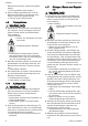 4 Safety Precautions ► Only release the lawn mower if it is on a level surface and cannot roll away by itself. ■ If objects are attached to the handlebar, the additional weight may cause the lawn mower to tip over. This may result in injury to people and damage to property. ► Do not attach objects to the handlebar. DANGER ■ If working near live wires, the blade may come into contact with the live wires and damage them. This may result in serious or fatal injury to the user. ► Do not work near live wires.