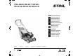 13. Transport 14. Environmental protection Lawn clippings should be composted and not disposed of in household waste. 13.1 Transport 30 Risk of injury! Observe the section "For your safety" before transporting. (Ö 4.) Always wear suitable safety clothing when transporting (safety shoes, thick gloves). Always detach the spark plug socket before lifting or transporting. For safety reasons, STIHL recommends lifting or carrying the machine only with the aid of a second person.