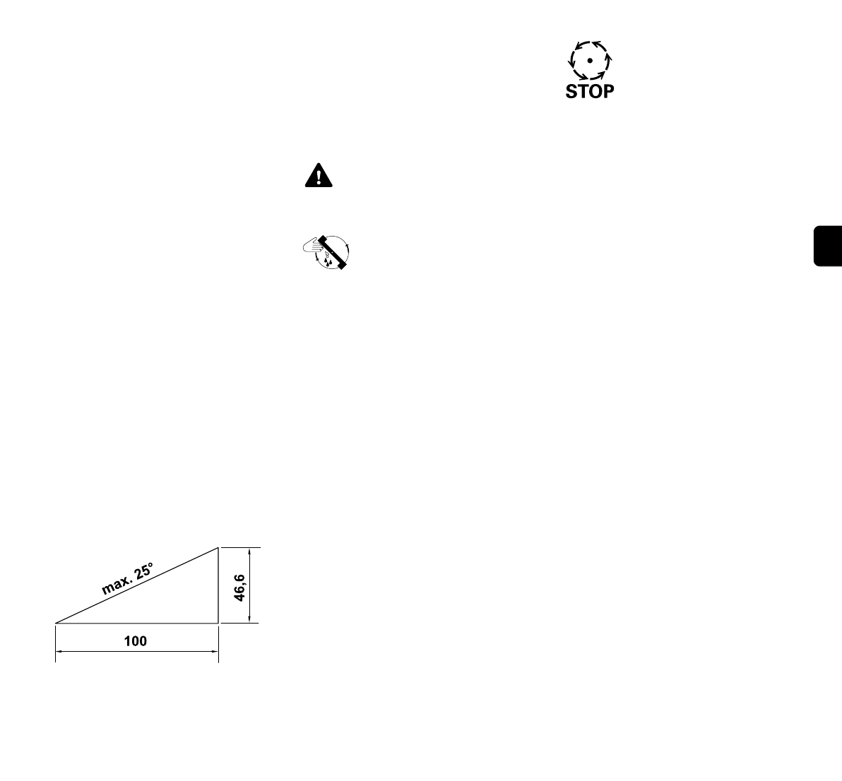 posizione stabile sui pendii ed evitare di