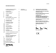français Principales pièces 1 2 3 1 4 5 6 7 8 9 10 11 12 13 14 15 16 17 18 2 4 5 6 3 10 7 8 9 12 16 15 13 14 21 17 18 19 22 20 23 19 20 21 22 23 24 25 # 24 # 25 0002BA057 KN 11 Bouchon du réservoir Réservoir Contact de câble d'allumage sur bougie Vis de réglage du carburateur Pompe d'amorçage Bouton tournant du volet de starter Poignée de lancement Bouchon de réservoir à baïonnette Réservoir à carburant Silencieux Grille Robinet de dosage Buse Tube de soufflage Gâchette d'accélérateur Poi