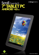 PRODUCT SPECIFICATION Scroll Essential II Hardware Unit Size (mm): 115 (W) x 190 (H) x 10 (D) Unit Weight: 300 g CPU: A13 Cortex A8 1.2GHz RAM: 512 MB GPU: 2D / 3D graphics processor Built-in Storage: 8 GB Storage Expansion: Micro SD card, up to 32 GB Display: 7” capacitive multi-touch Resolution: 800 x 480 Battery Type: Rechargeable lithium Battery Capacity: 2600mAH USB Port: 1x USB Speaker: 8 Ω / 1W Wireless Connectivity: 802.11b/g/n Software Operating System: AndroidTM 4.