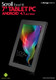 PRODUCT SPECIFICATION Scroll Excel III Hardware Unit Size (mm): 125 (W) x 188 (H) x 10 (D) Unit Weight: 350 g CPU: RK3066 Dual Core ARM Cortex A9 1.6GHz RAM: 1GB GPU: Mali-400 2D / 3D graphics processor Built-in Storage: 8 GB Storage Expansion: Micro SD card, up to 32 GB (not included) Display: 7” capacitive multi-touch Resolution: 1024 x 600 Cameras: Front 0.3MP, Rear 2.