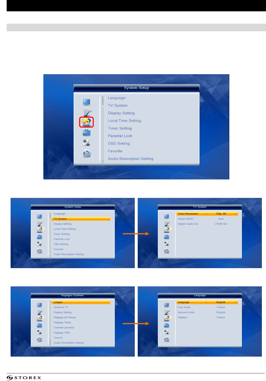 3. Wählen Sie "TV System" und dann "Video Resolution" um die Auflösung zu wählen.