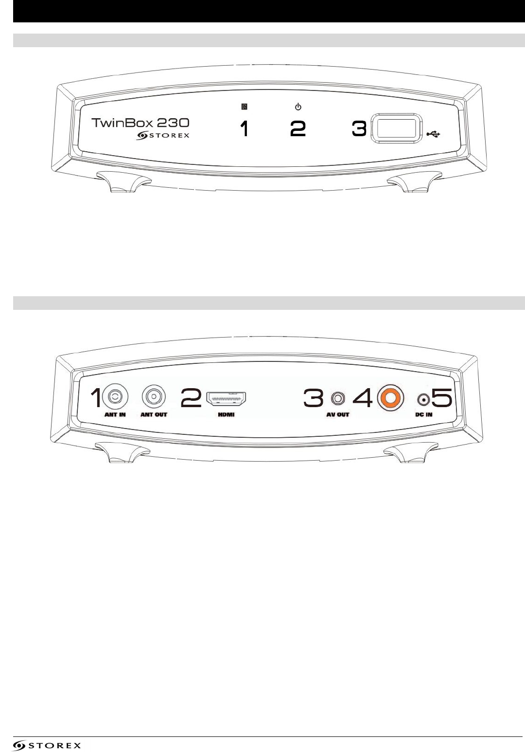 ANTENNE OUT: Ein Antenne-Kabel vom TwinBox 230 zum Fernsehen zu verbinden.