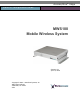 MWS100 Configuration Guide 4. Installation 4 Installation Note: The MWS100 is designed for professional installation. Failure to comply fully with these instructions may void the MWS100 warranty and/or violate local safety or radio regulations. 1. Select a mounting location for the MWS100. The MWS100 is designed for mounting in an interior compartment or trunk of an automobile. It is not intended for outdoor deployment. The MWS100 must not be exposed to liquids.