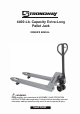 E;;iTRDNfiWAV 4400-Lb. Capacity Exrtra-Long Pallet Jack OWNER'S MANUAL • Wear steel-toed boots while operating the pallet jack. • Check for damaged parts before operating. Do not operate a damaged or faulty pallet jack. Do not attempt repairs unless you are trained or authorized to do so. • Operate a pallet jack from a designated operating position. Keep hands, feet, and other body parts clear from the lifting mechanism and under the forks of the pallet jack.