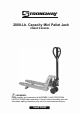 2000-Lb. Capacity Mini Pallet Jack OWNER'S MANUAL E;;iTRDNfiWAV • Wear steel-toed boots while operating the pallet jack. • Check for damaged parts before operating. Do not operate a damaged or faulty pallet jack. Do not attempt repairs unless you are trained or authorized to do so. • Operate a pallet jack from a designated operating position. Keep hands, feet, and other body parts clear from the lifting mechanism and under the forks of the pallet jack.