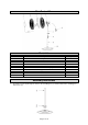 Main Parts of Fan Parts List Part No. 1 2 3 4 5 6 7 8 9 10 Description Misting Device Front Guard Blade Rear Guard Motor Power Cord with GFCI plug Upper Pole Spring Lower Pole Base Quantity 1 1 1 1 1 1 1 1 1 1 Assembly Instructions 1. Insert five screws (2) through the holes in the standing pole (1) and then attach the standing pole to the base (3).