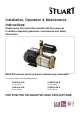 7 TROUBLE SHOOTING GUIDE Symptoms Probable Cause Recommended Action Pump will not start. Electrical supply. Check power supply. Check fuse (see fuse section). Check circuit breaker is set. Check wiring connections. Pump Jammed. If motor ‘Buzzes’ switch off power and contact Stuart Turner. Damaged pressure switch. Turn off power. Release system water pressure. Turn on power, pump should start. If NOT contact Stuart Turner. Recommended static inlet/outlet heads exceeded.