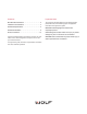 Contents Important Note Wolf Downdraft Ventilation . . . . . . . . . . . . . . . . . . . . . . 3 To ensure the safe and efficient use of Wolf equipment, please take note of the following types of highlighted information throughout this guide: Installation Considerations . . . . . . . . . . . . . . . . . . . . . . 4 Downdraft Specifications . . . . . . . . . . . . . . . . . . . . . . . 5 Downdraft Installation . . . . . . . . . . . . . . . . . . . . . . . . .