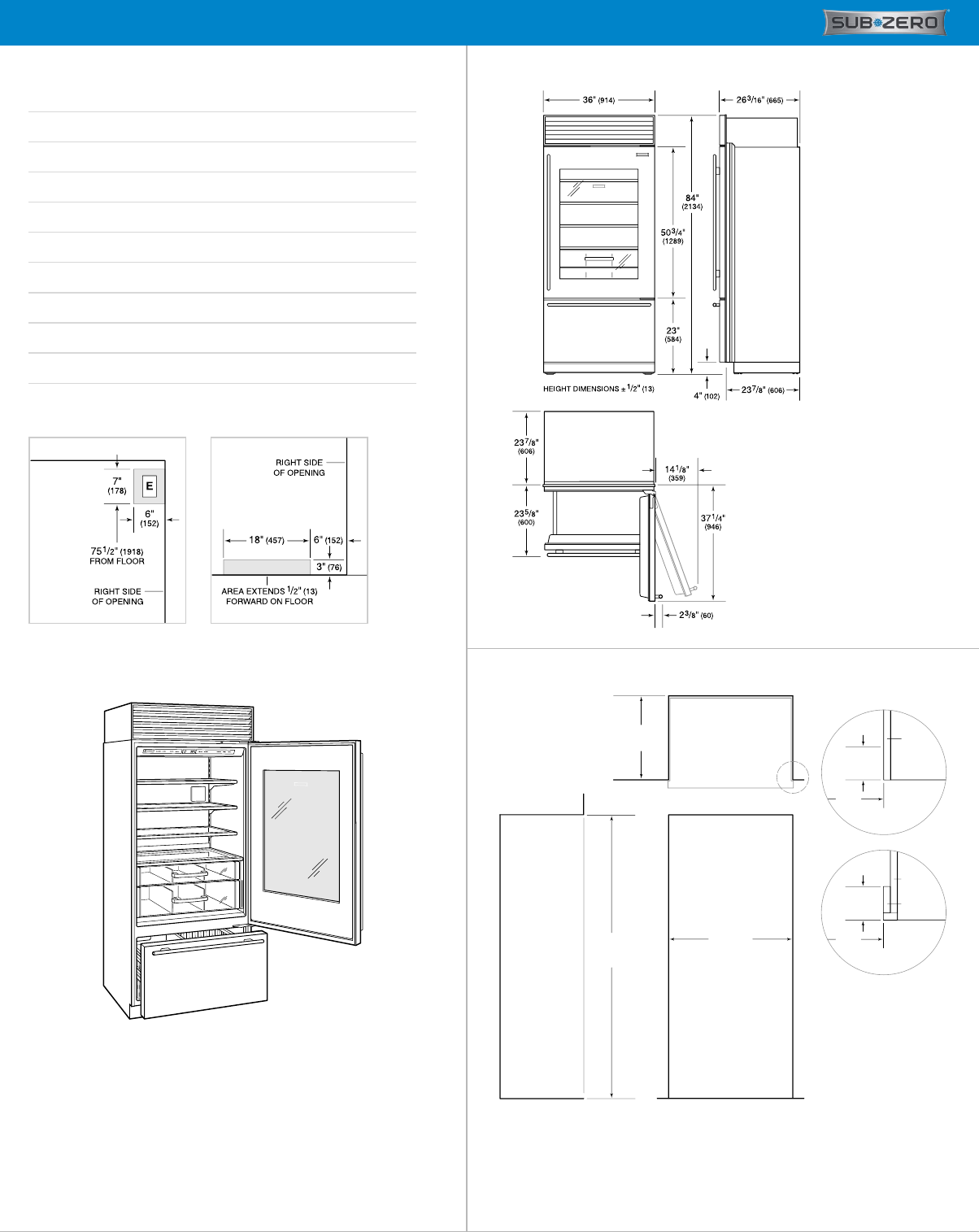 36"BUILT-INOVER-AND-UNDERGLASSDOORREFRIGERATOR/FREEZER