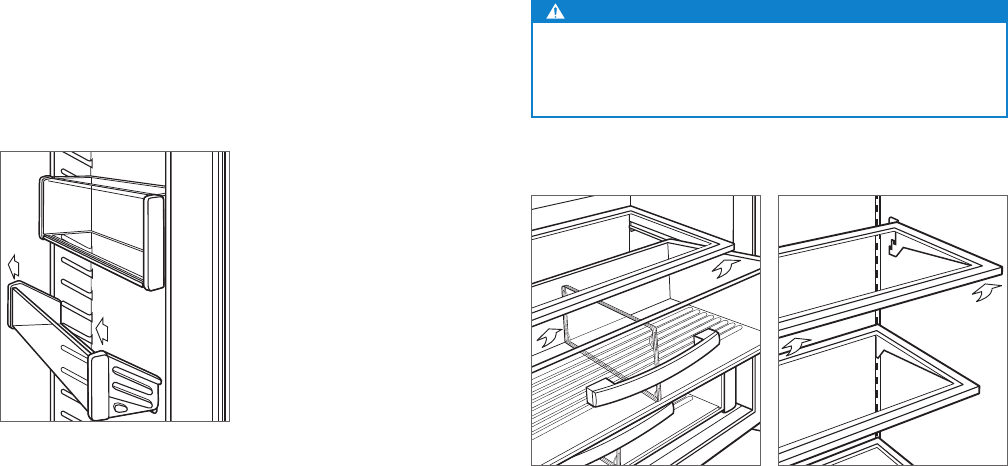 antes de extraer un cajón o estante de cristal.