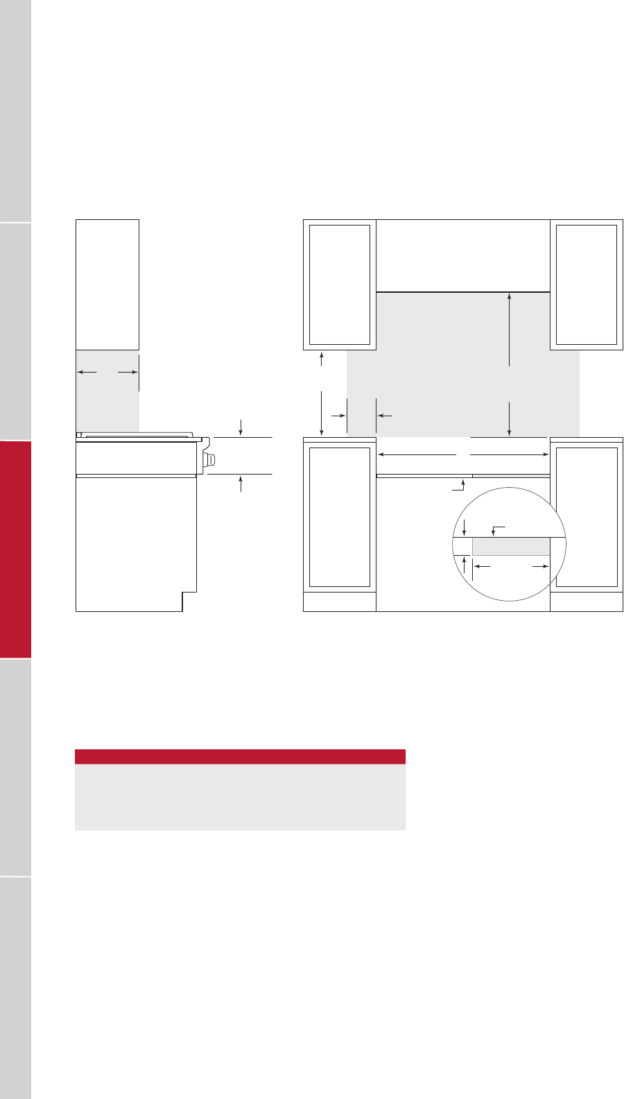 TE: Shaded area above countertop indicates minimum clearance to combustible surfaces,