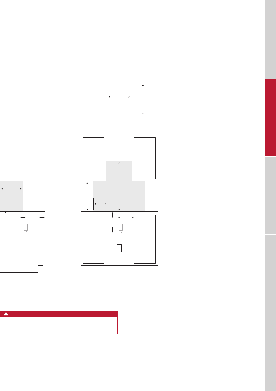 NOTE: Shaded area above countertop indicates minimum clearance to combustible surfaces,
