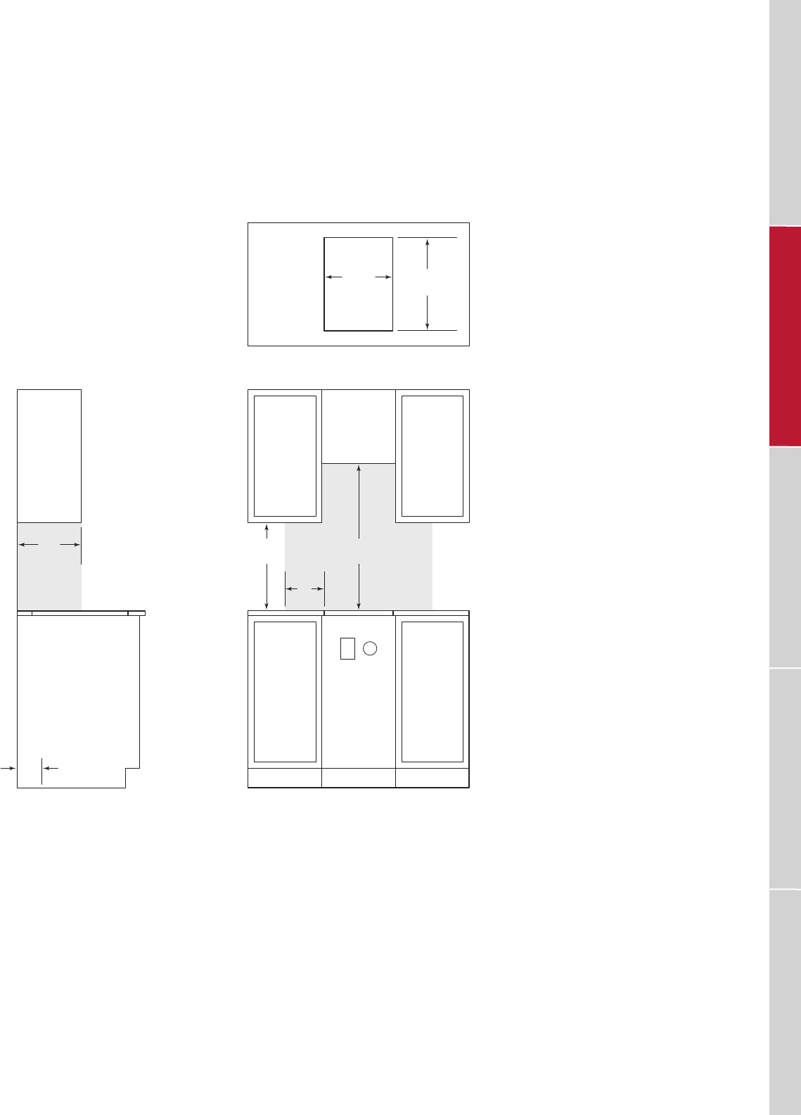 NOTE: Shaded area above countertop indicates minimum clearance to combustible surfaces,