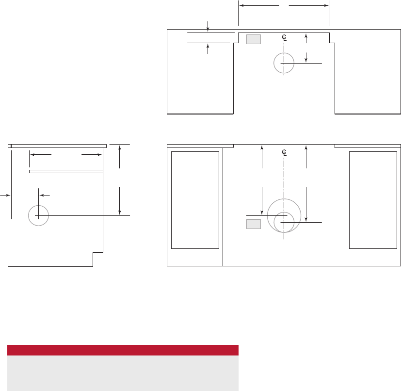*6" (152) back from countertop cut-out when internal blower is rear mounted.