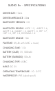SU DIO E tt - S PEC I FI C ATI ONS DRIVER SIZE: 10mm DRIVER IMPEDANCE: 32Ω BLUETOOTH VERSION: 5.0 BLUETOOTH PROFILE: A2DP 1.2, AVRCP 1.6, AVCTP 1.4, GAVDP 1.3, AVDTP 1.3, HFP 1.7, HSP 1.2, SPP 1.2, RFCOMM 1.2 BLUETOOTH RANGE: 10m PLAYTIME: 6h (4h with ANC + music) CHARGING TIME: 1.