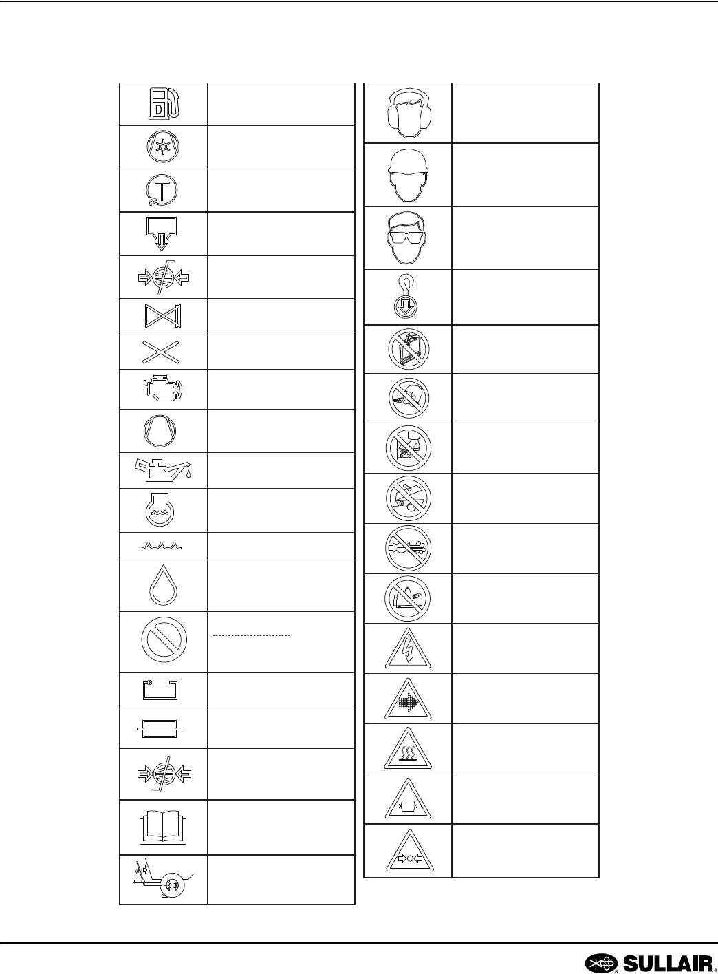 The symbols below may or may not be used. Please refer to the decals set forth on the machine for applicable sym-