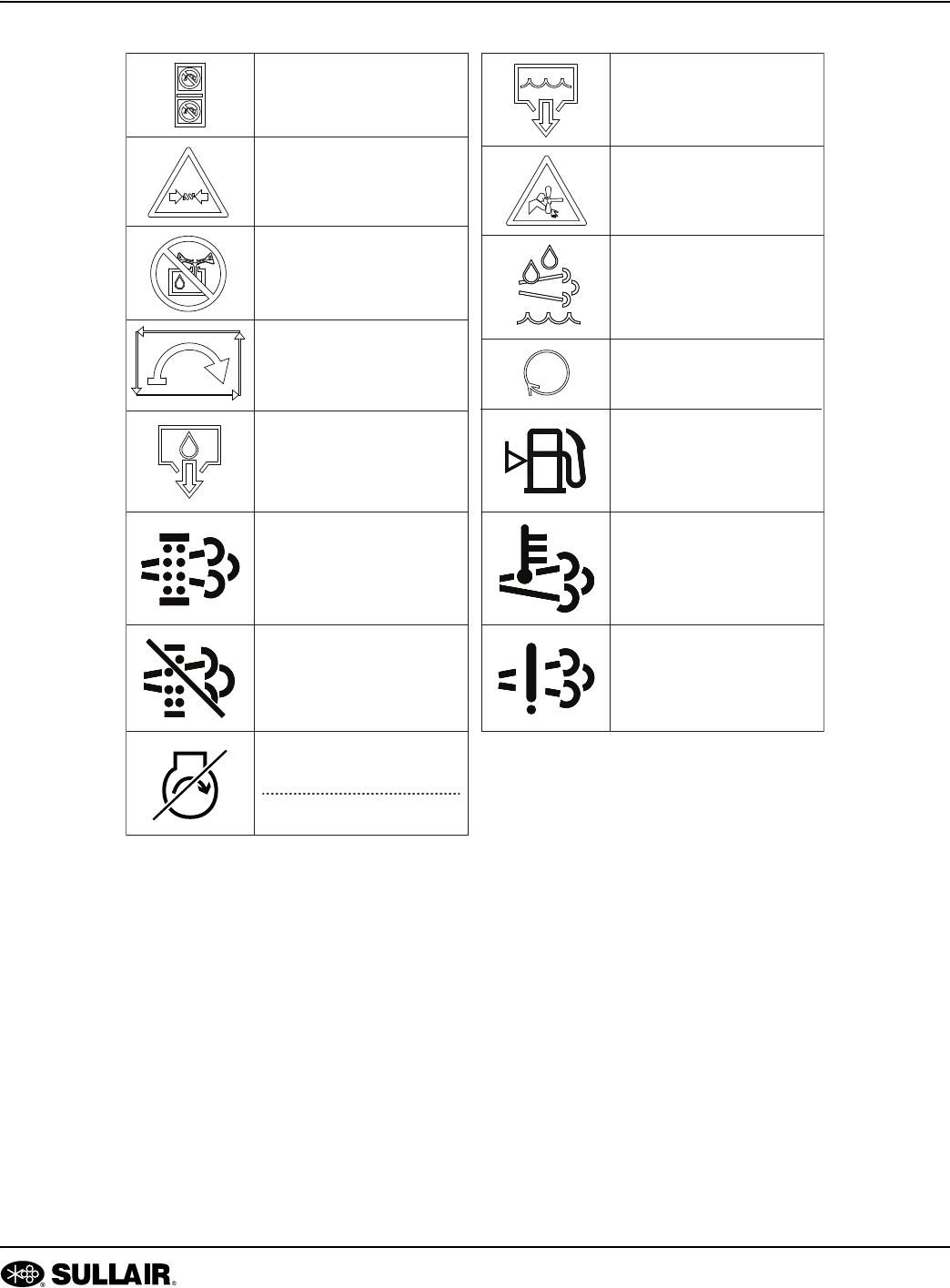 - J. Set compressor down only on a level surface capable of supporting at least its net weight plus an additional 10% allowance for the weight of water, snow, ice, mud, stored tools, and/or equipment.