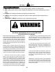 SECTION 1 - SAFETY GENERAL ASSEMBLY SAFETY PRACTICES YOU ARE RESPONSIBLE for the safe assembly of the machine. BLOCK UP ANY RAISED PART of the machine. Be sure machine is stable after blocking. DO NOT ALLOW CHILDREN or other unauthorized persons within the assembly area. ALWAYS INSPECT LIFTING CHAINS AND SLINGS for damage or wear. WEAR PERSONAL PROTECTIVE EQUIPMENT which includes a hard hat, eye protection, work gloves and steel toed boots with slip resistant soles.