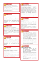 WARNING! SAFETY AND INSTALLATION WARNINGS • Please read all instructions before installation or operating your gas grill to prevent injury and appliance damage • All gas grills will get hot during use. Use extreme caution when operating the grill • Do not touch hot surfaces. Always use the handle to open or close the grill • Never use dented, rusty or damaged propane cylinders.