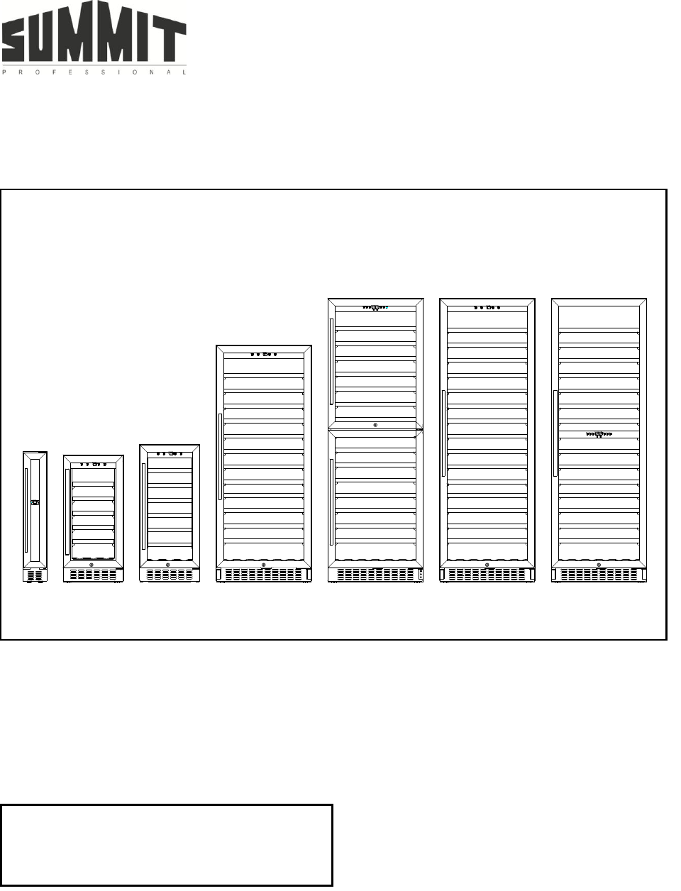 WINE CELLAR ModelNos.:SWC007/ALWC15/SWC1535B/SWC1102/SWC1875B/ SWC1926/SWC1966 Instruction Manual BEFORE USE, PLEASE READ AND FOLLOW ALL SAFETY RULES AND OPERATING INSTRUCTIONS. Write Serial No. (on lower left corner of inside cabinet) here: ___________________________________________ Felix Storch, Inc. An ISO 9001:2015 registered company 770 Garrison Avenue Bronx, NY 10474 www.summitappliance.