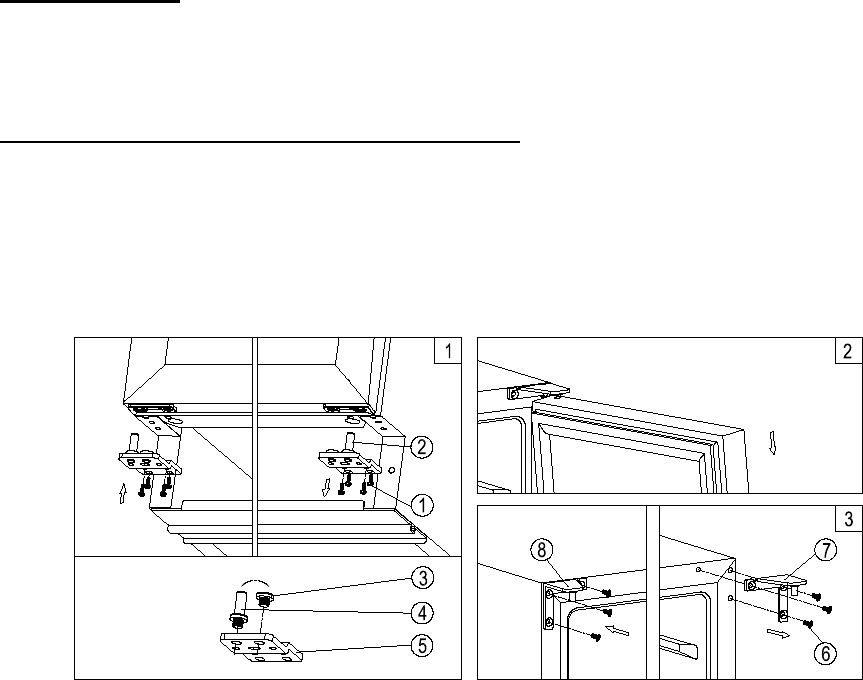 5. Screw the alternative left top hinge 8, included in the fittings, on the left hand side of cabinet. (Fig. 3)
