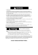 Table of Contents Important Safeguards .................................................................................................... 1 - 2 Location of Parts ................................................................................................................. 3 Technical Information ......................................................................................................... 4 Installation Instructions ............................................................................