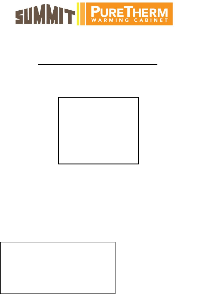 WARMING CABINET for Blankets and Towels ARMOIRE CHAUFFANTE pour couvertures et serviettes Models / Modèles PHC51G PHC61G PHC115G PHC101G INSTRUCTION MANUAL MODE D’EMPLOI Write Model & Serial Numbers here: Écrivez les numéros de modèle et de série ici: FELIX STORCH, INC. _____________________________ 770 Garrison Avenue _____________________________ An ISO 9001:2008 registered company Bronx, New York 10474 www.summitappliance.