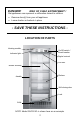 DANGER! RISK OF CHILD ENTRAPMENT ! Old appliances can represent a suffocation hazard to children. Remove door(s) from your old appliance. Leave shelves or baskets in place. - SAVE THESE INSTRUCTIONS LOCATION OF PARTS Heating module On/Off switch / circuit breaker Indicator light Digital controls Lint filter Blower channel Shelves Handle Self-closing door Lock Grille NOTE: Model PHC115G is shown here as an example.