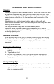 CLEANING AND MAINTENANCE Cleaning Unplug the appliance and remove all contents. Wash the interior liner with a solution of lukewarm water and mild soap, rubbing with the grain. Wipe off all soap residue when finished. Do not use detergents, scouring powder, spray cleaners or the like on the liner, as these may cause odors in the cabinet. Wash shelves in a mild detergent solution and dry with a soft cloth. Wipe the exterior surface with a soft cloth dampened with soapy water and then dry with a soft cloth.