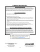 LIMITED WARRANTY ONE YEAR LIMITED WARRANTY Within the 48 contiguous United States, for one year from the date of purchase, when this appliance is operated and maintained according to instructions attached to or furnished with the product, warrantor will pay for factory specified parts and repair labor to correct defects in materials or workmanship. Service must be provided by a designated service company. Outside the 48 states, all parts are warranted for one year from manufacturing dates.