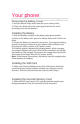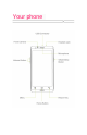 Your phone Removing the Battery Cover 1. Hold the device firmly and locate the cover release latch. 2. Place your fingernail in the opening and remove the cover according to the arrow direction. Installing the Battery 1. With the metallic contacts of the battery facing the metallic contacts in the battery slot, press the battery down until it locks into place 2. Ensure the battery is inserted in the phone.