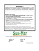 and workmanship under normal house or cottage use. SUN-MAR Corp. will furnish new parts